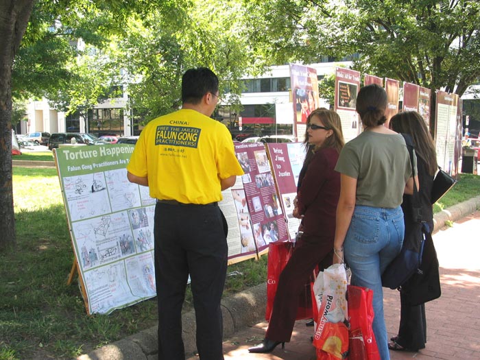 为了成功的举办这次酷刑展,很多学员都默默的奉献了许多。一位设计酷刑展的芝加哥学员特地于前一天晚上飞抵华盛顿帮助展览的设计工作,许多北卡和费城的学员也一大早驱车几个小时来支援。