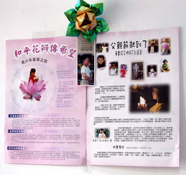 在天真的孩子们身上,我们看到“真善忍”的美好;在法轮功学员的身上,我们看到了教育的希望。在此,也严正的呼吁江氏集团,停止迫害法轮功学员,停止迫害善良的孩子!中国官员陈至立担任教育部长时,主导中国各级学校传播仇恨法轮功的思想,不但被追查迫害法轮功国际组织发出具体犯罪的通告,更于日前在坦桑尼亚被起诉而出庭应讯。相信有越来越多正义之声的支持,法轮功学员遭受迫害的事件将不再发生;无辜的百姓及孩子们遭受愚弄及欺骗日子也必将结束。
