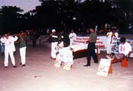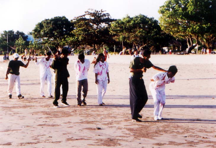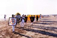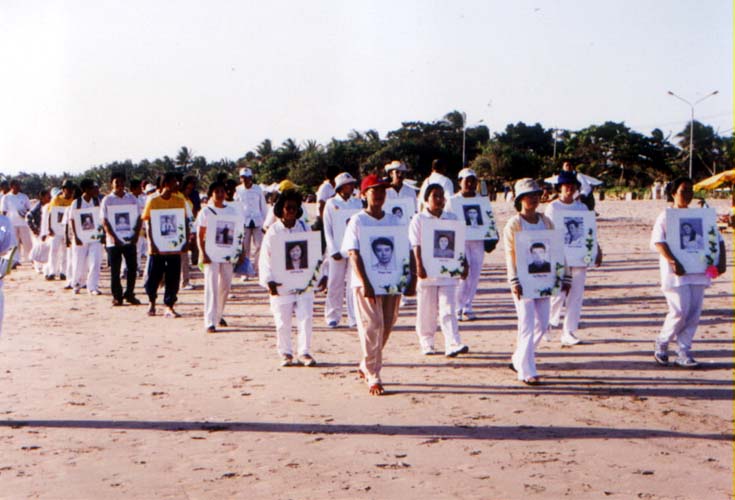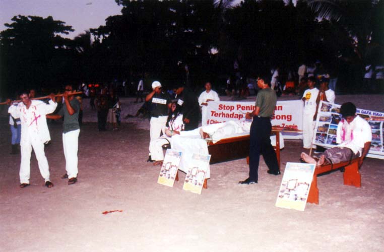 活动当天,大约有一百多名法轮功学员在著名的登巴莎市古德海滩举行庄严肃穆的游行,受到当地居民的关注,同时也吸引了不少的国内外游客。 游行队伍第一个环节是法轮功学员们双手捧着被江氏集团迫害致死的法轮功学员的遗照,引起观众的关注。这是江氏集团滥杀无辜、犯下“群体灭绝罪”的铁证,目前正被多个国家起诉,终将被送上历史的审判台。 第二个环节是:展示中国公安对待坚修真善忍的法轮功学员施与非人性的酷刑,它们用尽了历史上的一切刑具,但始终征服不了坚信真理的大法弟子,他们将承担自己所犯下的一切罪行。 夜晚,古德海滨上烛光闪烁,学员们再次以烛光悼念那失去了宝贵生命的同修。并一起发正念铲除邪恶的残酷迫害。