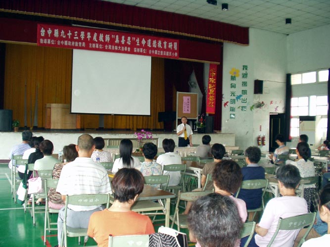 热心提供场地设备及各项协办业务的丰田国小校长陈坤水提到:他在多年前赴中国大陆旅游,曾见大陆各地均有无数民众在学炼法轮功。今年在新加坡也见当地有许多法轮功的活动,可见法轮功目前已是流行于世界的功法了。主办此次研习的唐小姐和江老师,他们的用心让他感受很深。