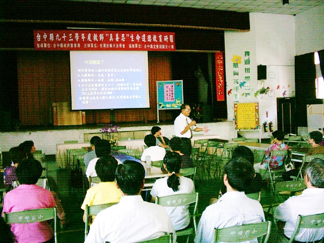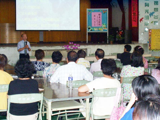 ![]() 丰田国小校长陈坤水致词 | ![]() 中正大学企管系副教授艾昌瑞演讲 |