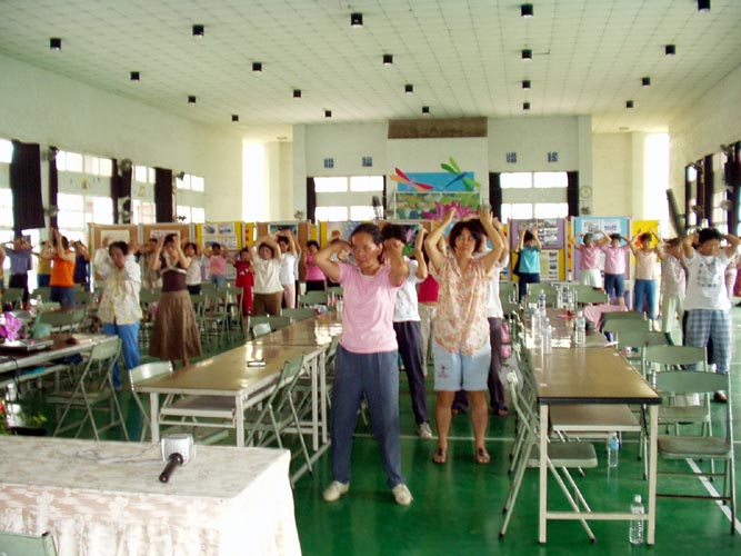 ![]() 大家都很用心学炼功法 | ![]() 学员林幸君母子 |