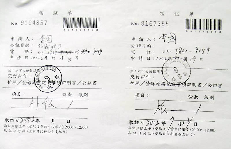 ![]() 日本学员李园 | ![]() 李园以前的护照 | ![]() 李园补办护照的收据 |