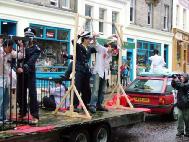 活动过程中,阴雨绵绵不断,仿佛苍天也为法轮大法弟子遭受的不公和苦难落泪。雨中的行人虽行色匆匆,但许多人仍愿意接受法轮功真象传单。游行队伍从市场街出发,途经Waverley桥和王子街,在城堡街结束。历时1个半小时。爱丁堡的民众在前一日欣赏到法轮功团体所展示的美好之后,在第二天又目睹了法轮功在中国所受到的酷刑折磨。强烈的对比使民众加深了解了江泽民集团所犯下的反人类的罪恶。