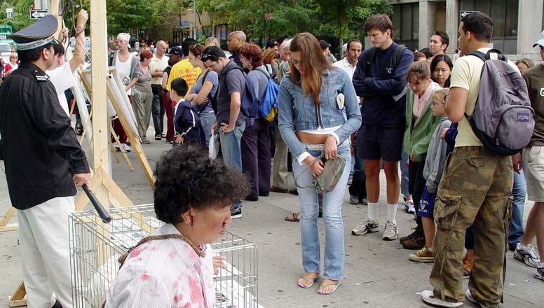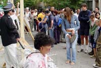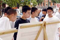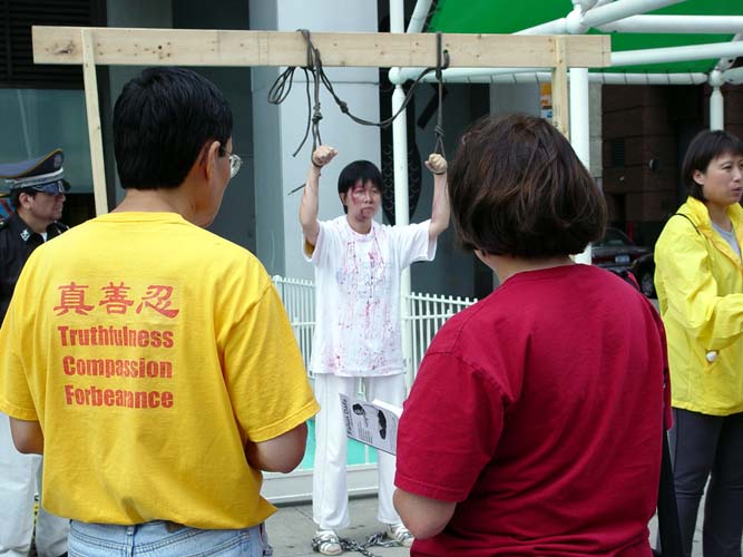 因为这个周末在南街码头地区举行青少年篮球赛等多项活动,显得人山人海。从酷刑展前路过的人们看到这种种酷刑场面,并听到介绍说这是五年来对法轮功学员進行迫害的其中一小部分,并且正在天天发生同样的迫害的时候,无不动容。人们对江泽民邪恶集团对法轮功的残酷迫害感到愤怒,对法轮功学员表达了同情和支持。
