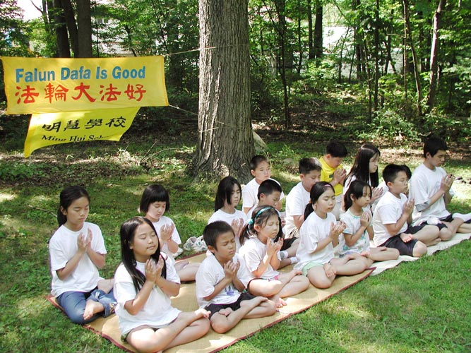明慧学校的师生们充分利用每期短短的四天时间,坚持每天六至七小时的集体学法、炼功、讨论,并参加每天两次的全球发正念。老师还给孩子们播放了一些法轮功真象片,并以发生在明慧学校的孩子家长、亲属身上的迫害为例向孩子们讲述发生在中国大陆的法轮功受迫害真象。孩子们也拿起了笔,分别给中国政府、警察或狱中的法轮功学员们写信,呼吁停止迫害,并支持在中国坚持和平反迫害的法轮功学员们(这一组信件已在8月2日的明慧网上刊登)。