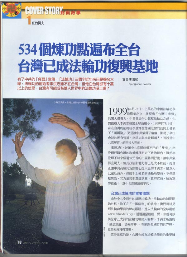 新新闻729期封面故事报导,法轮功已越过台湾海峡,不仅在台湾落地扎根,而且中共愈打压,炼功风气愈盛。