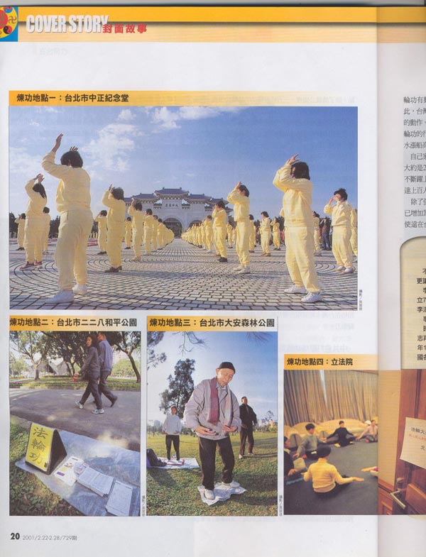 连续几天的教功活动,有十几位同事来学,也引来新闻媒体的注意,新新闻杂志记者李清如到现场拍摄炼功的状况,当时的我因学法不深,不敢接受采访,只好推荐她去访问台湾大学的张教授。当期杂志还以封面专题报导“台湾已成法轮功复兴基地”。
