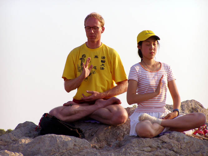 一位女华侨带着她的两个法国朋友来到了广场,当她看到发资料的法轮功学员后,学员们向她讲解了正在中国发生的迫害。她转而又向她的朋友们進行了翻译解释。她对大法弟子说,镇压法轮功是不对的,在奥运会期间看到你们在这里这样做(炼功讲真象)很好,就是应该这样做。她的一位法国朋友说,这次你们在希腊这样做,2008年你们应该在北京天安门这样做,特别是西人法轮功学员!发资料的大法弟子说,我相信会有这一天的。这位法国朋友回答说,我也相信你们一定会有这一天的!