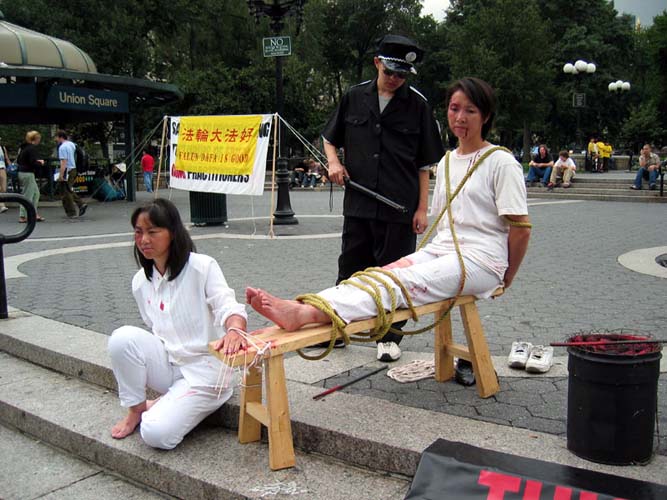 上亿的法轮功学员在中国被残酷的迫害了5年,而且仍在继续着,然而世界上很多人仍不知道。当人们亲眼目睹了流着血的老人被捆绑并被吊起来关在笼子里时,对迫害者的残暴的谴责终于暴发了。