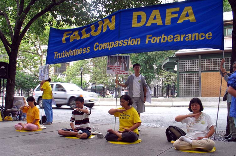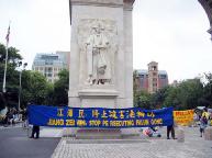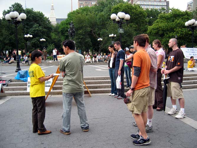 他说:“美国讲民主,允许在这里演示;在中国大陆酷刑迫害一般人不知道,只有亲戚朋友才听说过。演示只是九牛一毛。演示就是为了让美国人看到在中国大陆江泽民一伙对法轮功的谎言镇压,让人们了解真象,伸张人间正义,同时也唤醒自己的良知。让更多人了解真象,记住镇压已经在中国进行了5年,不能再下去了!不能看着让丧心病狂的江氏集团把数以万计的好人往死里整。”