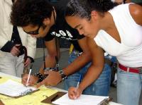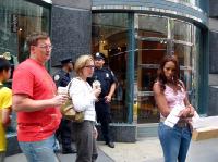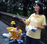 还有另一些法轮功修炼者在曼哈顿的其它街头发放真象资料。
