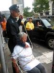 酷刑展示人们为迫害真象所震惊讲真象签名支持法轮功,反对迫害在中领馆前发正念
