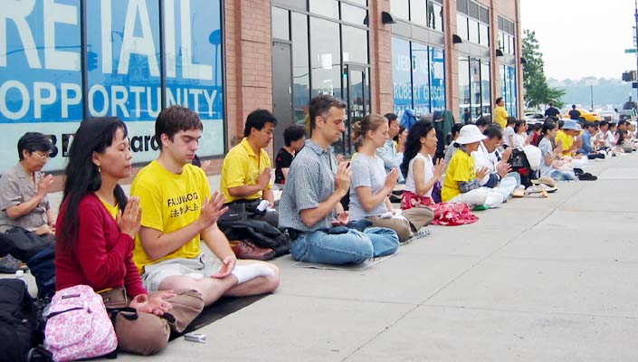 凝重的音乐声、惨烈的景象反衬出法轮功学员面对魔难依然坚贞不屈的精神,使路人震惊和感动。人们纷纷接过传单,在反迫害的签名表上签名并询问如何能更有效的帮助法轮功学员。