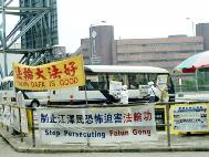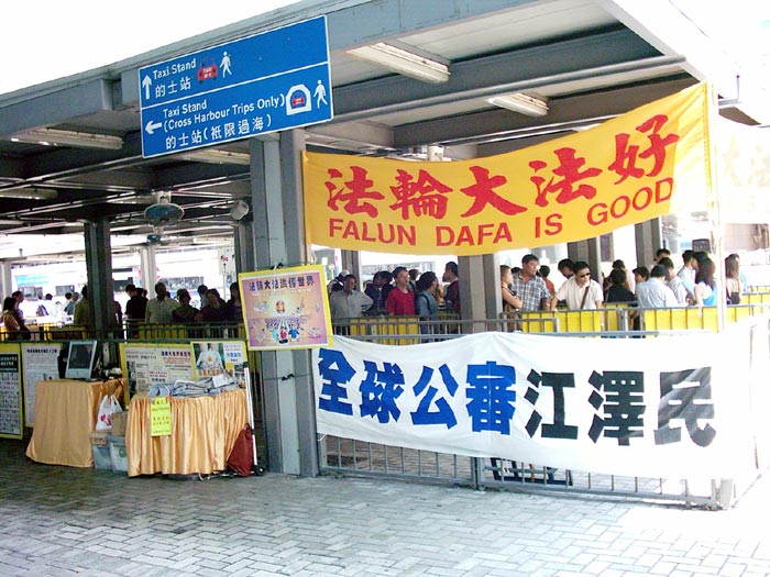 刚开始有些人不敢拿法轮功真象材料,听到“香港是新闻自由、言论自由的地方,你可以了解国内不知道的真象,不要放弃你的知情权!”“为何国内要封锁消息,销毁《转法轮》书籍,不就是怕你们知道真象吗?你们真有福气来到香港了解真象!”就拿真象材料。有的看了多次的展板及录像说明也拿了。有的是看了领队、导游、同行者或警察、民众的态度拿的。一位当地民众说了:“真佩服你们长期这样做的毅力!”这些支持法轮功的善良人们,也是在奠定他们美好的未来。当然,法轮功学员们表现的平和理性、自律、真诚、善良、忍耐,也是他们获得认同的原因。