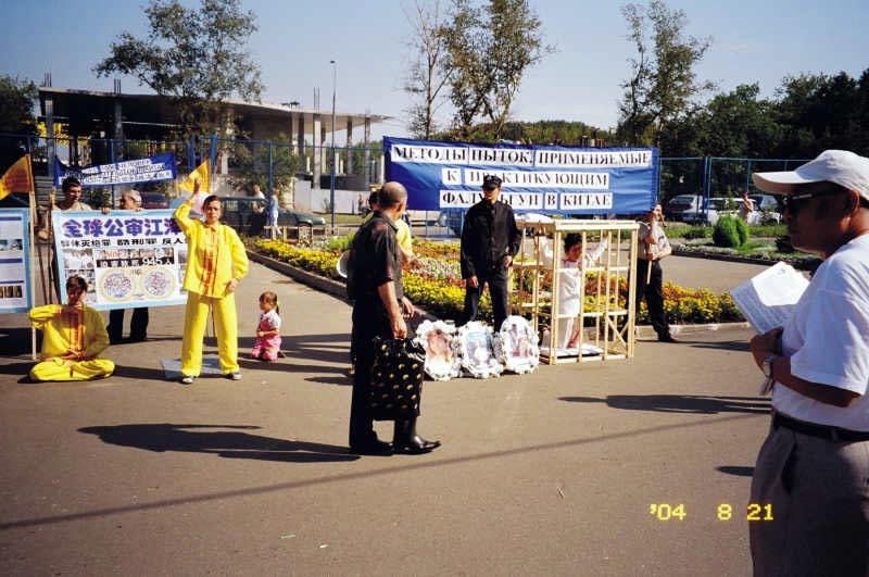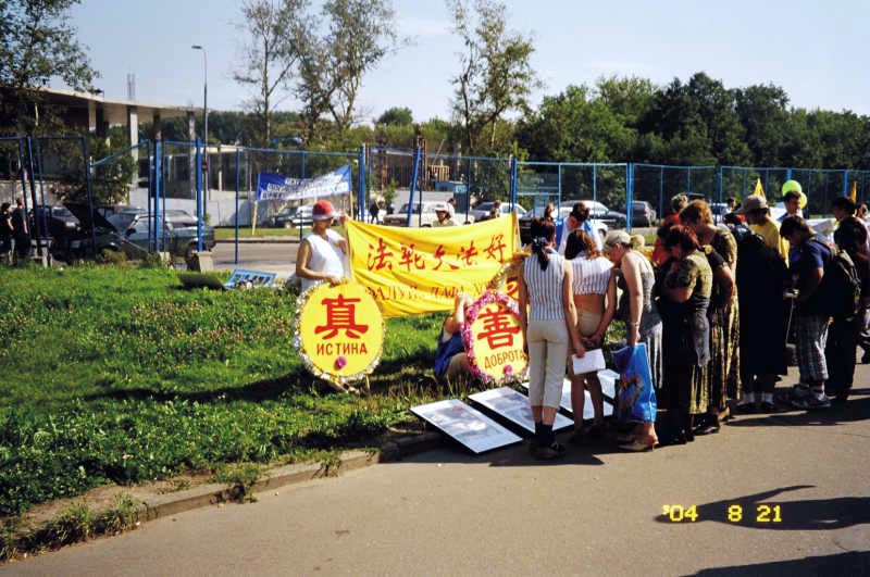 俄罗斯法轮功学员在莫斯科闹市区讲真象(图)