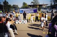 俄罗斯法轮功学员圣彼得堡市市中心讲真象(图)