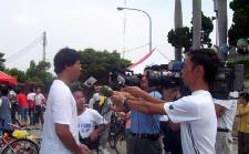 一大早“营救受迫害的孩子”的旗帜,引起路人的好奇与关注。单车之旅,13日来到彰化八卦山。台联主委陈阳德致词时说:自由环境是多么的可贵,这是多少人牺牲付出才能换得。他呼吁对岸统治当局一定要顺应时代潮流,不要再残害法轮功的信仰。最后他诚挚的表示,为了声援这项活动,他愿意捐出个人的两日所得。他的好意主办单位婉谢了,因为整个活动都是大家自愿义务参加的,没有接受赞助。 县议员邱建富接着表示:“整个议会与县府都非常支持这个活动,相信这个诉求一定能传遍全世界。”当他谈到,去年底他参加在彰化举行“营救在中国受迫害的台湾媳妇”的声援活动,当时遭中国无理关押,也是被营救对象之一的彰化媳妇张琼女士,今年终于回到台湾,而且与她的两个小孩一起来到现场。这个惊喜引起现场热烈掌声,也给参与骑单车的小朋友及来宾们带来鼓舞。
