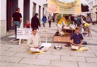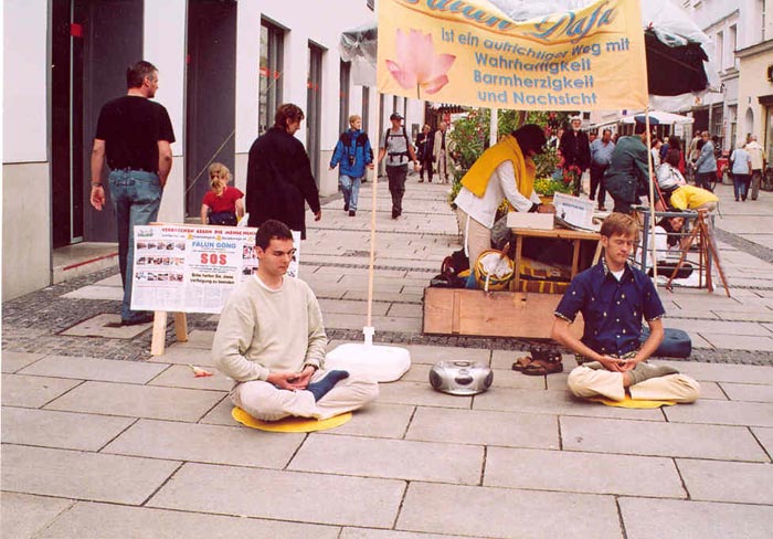 帕索和中国广西柳州是姐妹城市,当地的居民对中国的事情很感兴趣,但对大法在中国受迫害的情况了解的很有限。2004年8月21日,帕索的法轮大法弟子在市中心举办了反酷刑展,周边城市慕尼黑(Muenchen)、累根斯堡(Regensburg)和卡姆(Cham)的学员也赶来支援。从早上开始,方圆几百公里内雨就一直下个不停,待到我们的展位摆到街头时,雨下得更大了,给我们炼功、发资料带来很大困难,反酷刑展一时无法演示。后来我们改成每半小时发一次正念,清除另外空间邪恶因素的干扰,然后炼一套功法,两遍下来,雨就停了。