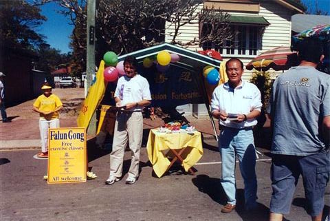 那天,学员在展台旁不停的为当地居民演示功法,很多参加节庆活动的人来到展台观看图片,索取真象资料,不少人对法轮大法表示感兴趣,并对中国法轮功学员遭受的迫害表示关注和同情。