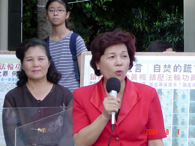 ![]() 学员炼五套功法 | ![]() 学员向路人解说真象 | ![]() 台南市长许添财表示支持 |