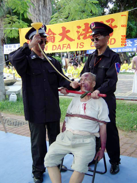 还有扮演公安的学员也都表示:虽然是化妆的,但看到被打得面目皆非的学员,心中就很不忍,真不知道那些参与迫害的公安怎么下得了手?