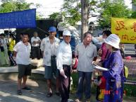 而在现场解说真象的学员则表示:心中只有一念,希望有缘人了解真象,反迫害,支持大法。