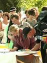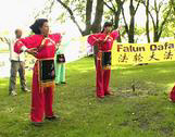 在许多愿意接受传单和了解真象的中国人中,有一位女士说她希望法轮大法很快会在中国获得到平反。还有些台湾人说,现在台湾有近四十万人学炼法轮功。