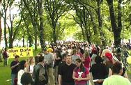 当天还有法轮功五套功法的展示,路人都被传统中国伞舞和扇子舞所表现出的优雅吸引。然而,在后方的横幅则呈现了一个全然不同的对比,除了告诉世人法轮大法的美好外,还诉说着前中国领导人江xx对法轮功的恐怖镇压,十分引人注目。有很多人签名呼吁将江xx送上法庭,为其所犯下的罪行接受制裁。对于现今在世界上发生如此的暴行而且未受到制止的事实,人们都感到很震惊。