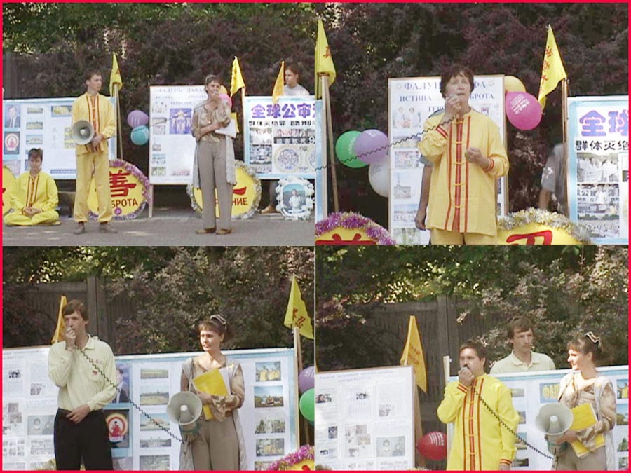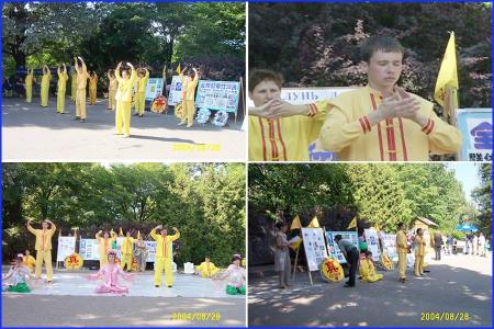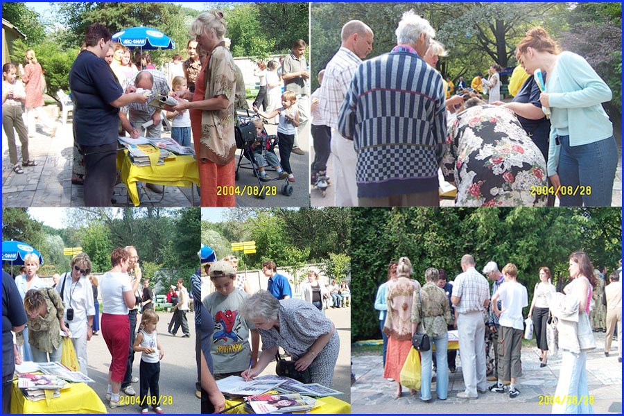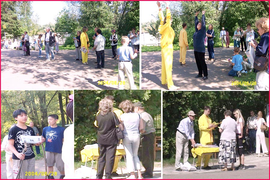 【明慧网2004年8月31日】8月28日,莫斯科大法弟子在弗拉迪克纳公园洪法、讲真象: