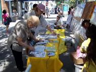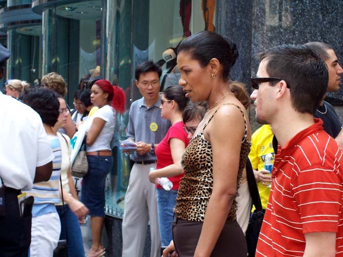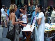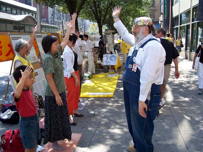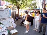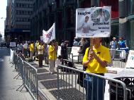 ![]() 法轮功学员在纽约街头讲真象 | ![]() 纽约民众围着听真象 | ![]() 被酷刑震惊的民众 |