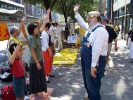 当天上午,学员们在曼哈顿百老汇大道和72街的附近举行了酷刑展。几天来,由于学员们持续的讲真象,附近的很多居民都了解了真象,并对学员们的活动给予支持。一位美国老太太来到酷刑展前跟学员说,“周围附近的很多居民都已经拿过你们的资料,都已经了解真象了。我非常支持你们。你们可以多到一些地方去,让更多的人知道事实真象。”