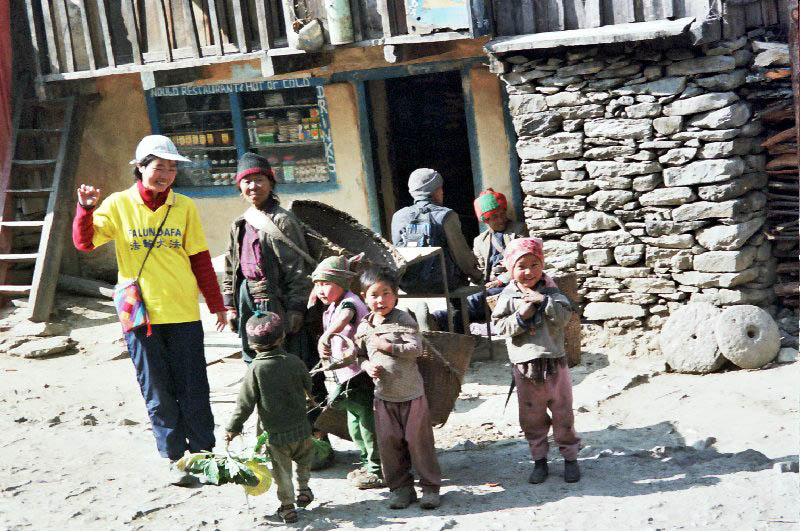 因此我也渐渐的改变了与他们打招呼的方式,从尼泊尔人打招呼时说的“Namaste”,改成了“法轮大法好”,而当地朋友所学的第一句中文,就是“法轮大法好”,“真善忍好”。