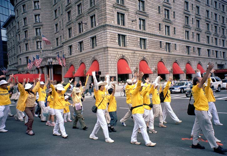 ![]() 华盛顿DC法反酷刑展 | ![]() 林肯纪念堂前炼功 | ![]() 波士顿游行 |