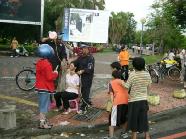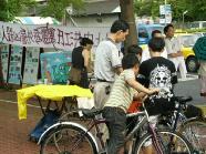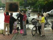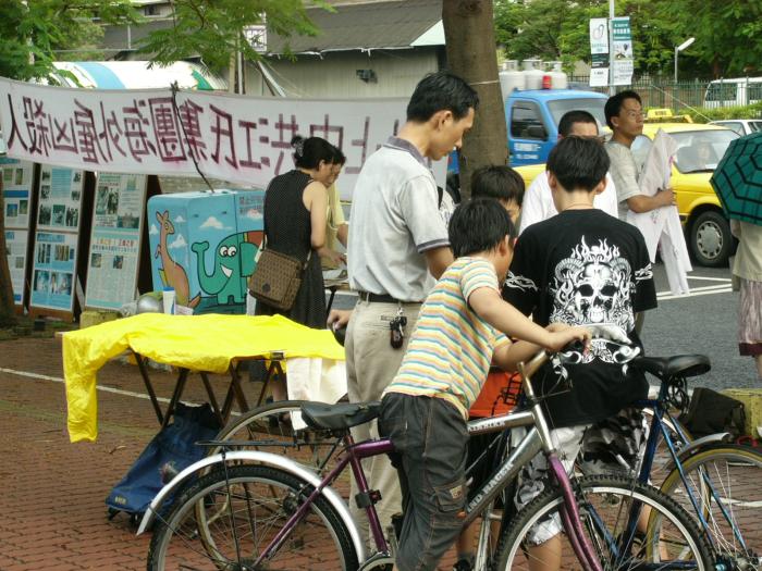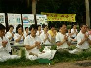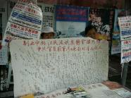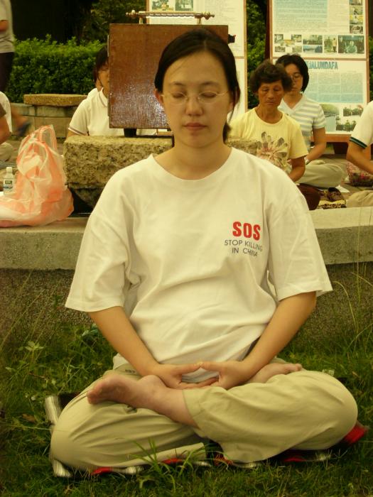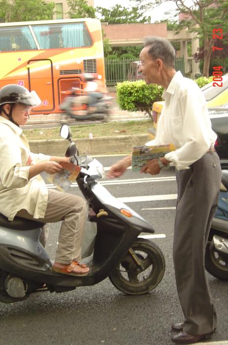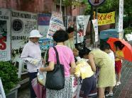 九十三岁的马伯伯在路旁往来不停的发着真象资料,直到活动结束,没有停歇。还有台湾学员林晓凯的妻子陈淑雅,去年为了营救被上海国安局非法关押的先生,不停四方奔走,受到总统陈水扁的关心,成功的救回了晓凯。如今她虽然身怀六甲,但是为了营救更多的人,她奔走得更勤了。