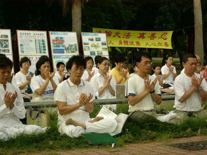 台湾台南市的法轮功的学员也如同全世界的法轮功学员一样,为早日制止中国江氏集团无理的迫害尽心尽力。2004年7月23日,台南市七、八十位法轮功的学员齐聚在车水马龙的小东路旁。点着盏盏烛光,静静的表达着对被迫害致死的大陆法轮功学员的哀悼。