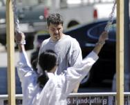 【明慧网2004年8月9日】圣马刁日报(San Mateo Daily Journal)8月7日报道,一位路人在位于红木城的圣马刁县政府楼前停留,观看法轮大法学员反对中国[江氏]政府