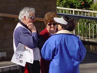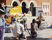 一对从武汉来的年轻男女在接过传单后说,从大陆来的人,不可能没有听说过法轮功被迫害的事,因为这场迫害几乎波及了每一个家庭。“网路是封锁不了的,包括南非枪击案我们也在关注。”他们到这里来是想了解,法轮功真的对身体这么好吗?他们更想知道法轮功创始人的原著中到底都写了什么。