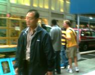 记者询问一旁的法轮功学员,来自康州的孙振宇女士,到底发生了什么事。她说:“这个人我已经见过一次了,上周我们在炮台公园办酷刑展时,他就去闹过,只是没动手,后来被警察赶走了。这次竟然动手了。但令人感到奇怪的是,每在事发的当场,总有一位陌生华人男士与此流浪汉如影相随,而且是每当这个华人男士出现在这个流浪汉的视野之内时,流浪汉就象充了电一样的闹得更凶。”说罢,她暗指站在大约十米开外的一位身穿夹克的男子:“就是他。”