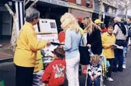 即日早晨,学员们从四面八方赶到圣玛丽斯镇。初春的圣玛丽斯小镇已经沉浸在一派节日的景象中。悉尼法轮功学员抓住这一机会向当地的世人讲真象,主要活动有:大法信息台,毛笔字,征集签名,炼功,发资料等。