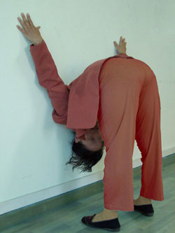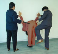 警察把这三个动作连起来逼迫不写“保证”的法轮功学员连续做,要求动作迅速,让人手忙脚乱还不能出错,三个动作算一次,至少做300次以上,通常做500次。这样反复蹲起,做完后双腿肿胀,只能叉着腿走路。