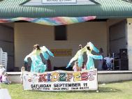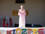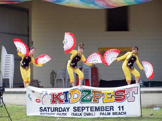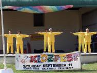 游行终点是Rotary公园,那里有很多供孩子们娱乐的设施和活动,舞台上,歌舞演出不断,一派喜庆气氛。法轮功学员支起两个帐篷,其中之一是“和平的花瓣”展台。很多家长带着孩子一边学折纸莲花,一边静听学员向他们讲述小法度的故事,以及她爸爸因修炼法轮功被在中国迫害致死的情况。