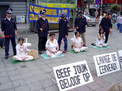 【明慧网2004年9月17日】2004年9月11日下午,来自荷兰,法国的法轮功学员与比利时的学员一起在比利时布鲁塞尔市中心举办反迫害酷刑展,向公众展示正在中国发生的对法轮功学员的残酷迫害。