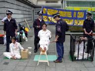 ![]() 国家人权大会前的酷刑展示 | ![]() 观看酷刑展示的韩国市民 | ![]() 发正念 |