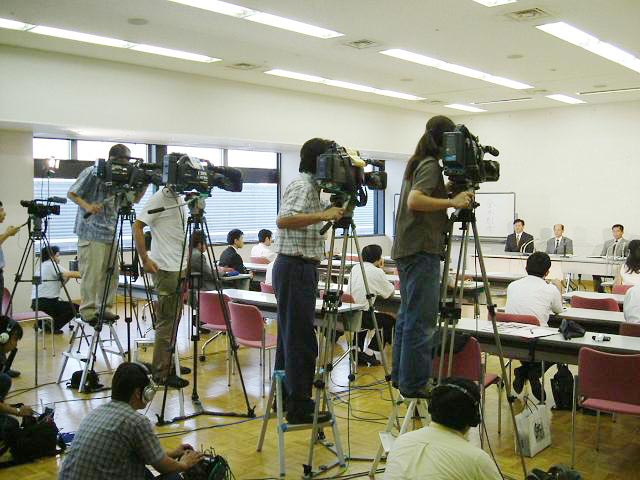 ![]() 记者招待会现场 | ![]() 学会成员就记者关心的天安门自焚事件,展示该事件中真假三个王进东的照片 | ![]() 记者在阅读招待会提供的法轮功真象资料 |