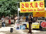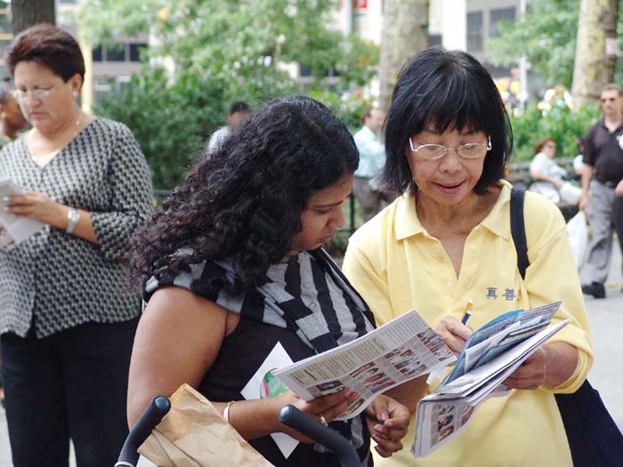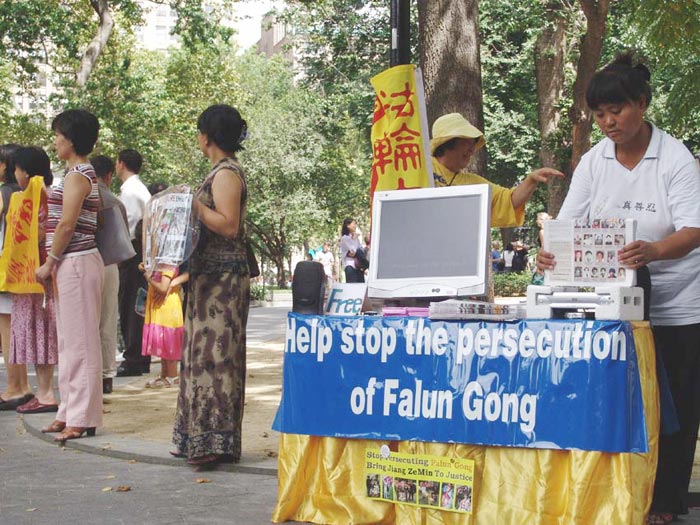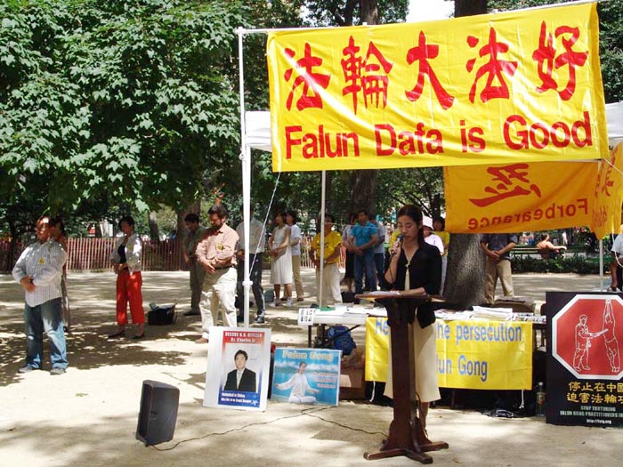 【明慧网2004年9月2日】2004年8月30日是美国共和党全国代表大会开幕之日,万余名来自世界各地的媒体记者,和形形色色的有各种诉求的团体汇集纽约市。法轮功学员抓住这个向世人讲真象的机会,于30日中午在大会会场附近的麦迪逊广场花园举行新闻发布会,通过图片、录像片、演讲、及文字资料,把法轮功在中国受的真象告诉民众。
