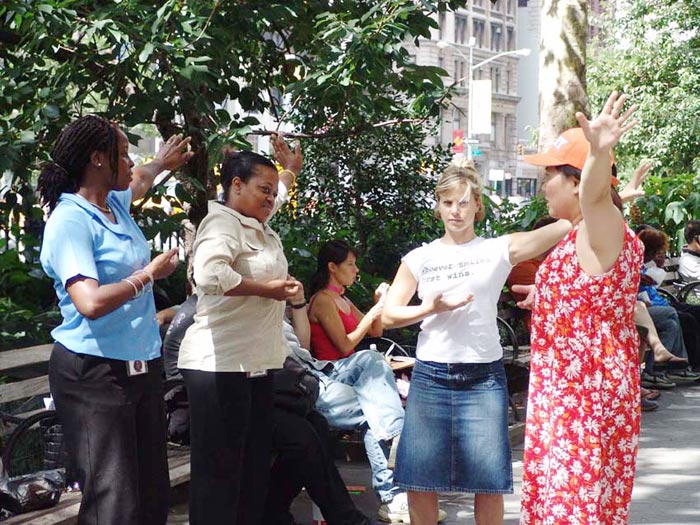 功法演示 |  一些民众被现场的功法表演所吸引,当场学炼起来 |