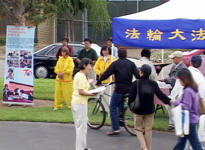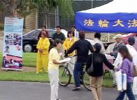 当天的园游会,多项融合美中文化的歌舞表演和近百家摊位吸引了众多的人潮。为了不落下一个有缘人,学员们一早就摆好了摊位,还摆放了电视机播放真象内容。有的同修在做功法表演;有的同修发资料;有的讲真象和回答人们的疑问。