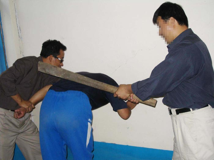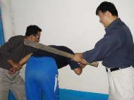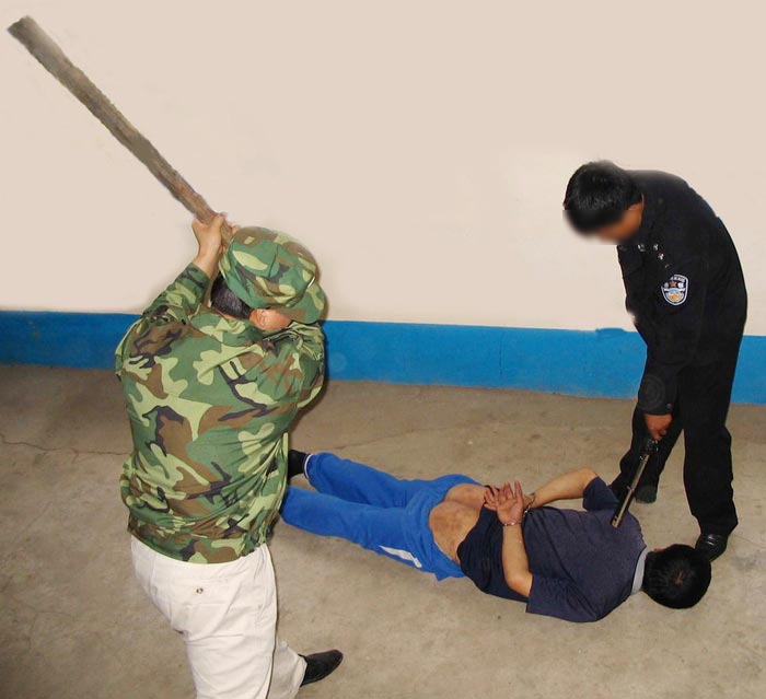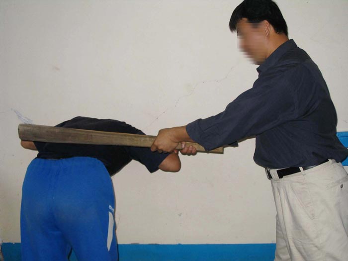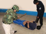 “十一”刚过,即将召开十六大的前夕,邪恶之徒又纠集了力量开始了又一次的疯狂迫害。朝阳沟劳教所又开始了第二次所谓的“攻坚战”。所采取的办法和第一次相同,有不少法轮功学员在法上认识不足,先后又有部分人被强迫写了三书。在这期间,我曾找到本班恶警管教王和兴讲明了我捍卫大法的决心,被绑架到了管教室。恶警李军说,你快到期了,写悔过书回家吧!这次我再次面对邪恶的迫害心里格外的平静,一边发正念铲除控制他们的另外空间的邪恶因素,一边说:这是不可能的。这时几个恶警不由分说,冲上来就用一根长竿把我的手脚串在一起,一点也不能动,接着,又用电棍电击肛门,按理说这次对我的迫害比四月六日那次还重,可我没有丝毫的紧张感,我始终直视恶警,心中默念正法口诀,并发正念清除他们背后的另外空间的邪恶因素。这时,一恶警王××走过来问我:“法轮功是什么?”我说:“是正法。”他说你怎么看待法轮功?我回答说:比我生命还重要。他听完后说,你既然都说了,为什么不敢大声一点?我听到这话后,马上大喊一声:法轮大法比我生命还重要。他们听完后,又狠狠的打了我几下,就喊来两个刑事犯准备把我架回去,这时我全身已失去了知觉,是被几个刑事犯人拖回监舍的。