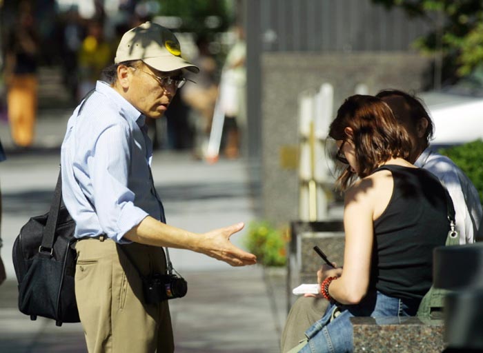 美流浪汉曼哈顿撒完泼 伸手向那中国人要钱(图)